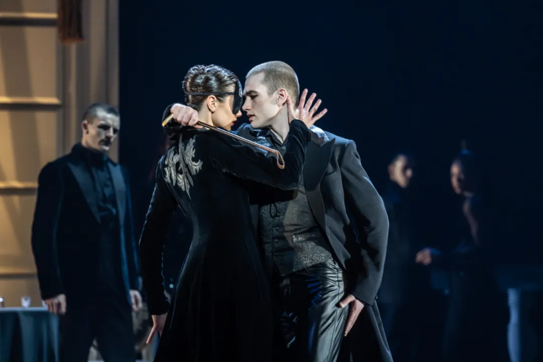 馬修在男鵝與王子的雙人舞段中,精妙運用了動作主題的變奏與復調結構:動作在不同段落中重複、變形、再現,使身體語言身體語言不僅承載情感,更參與敍事推進。