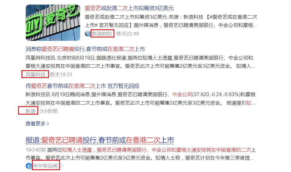 近日,據華爾街見聞、新浪財經、新浪網和鳳凰科技等多家媒體援引Reuters(路透社)報道——“2名知情人士透露,愛奇藝已聘請美國銀行、中金公司和摩根大通安排其在中國香港的二次上市事宜。此次上市可能籌集2億至3億美元資金”。