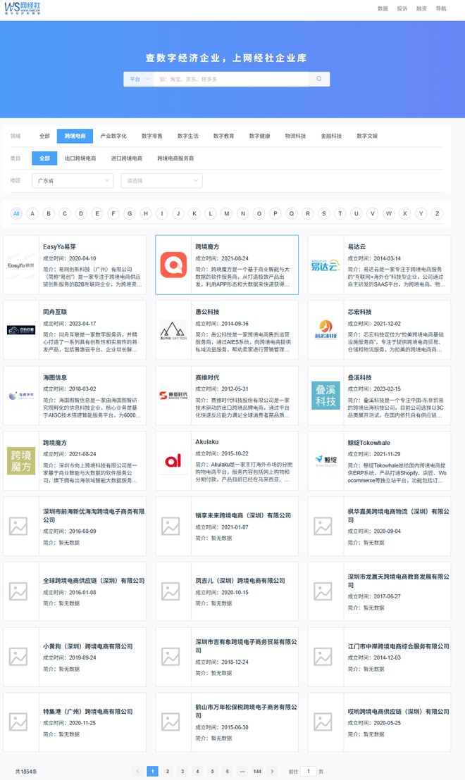網經社企業庫收錄的廣東省跨境電商企業共有1854家,包括跨境魔方、易達雲、同舟互聯、愚公科技、芯宏科技、海圖信息、賽維時代、ESG集團、易芽、華寶新能、速易特、海豚供應鏈、美客多、廣貿天下網、賽盒科技、通途、買家成長網、易通全球等。