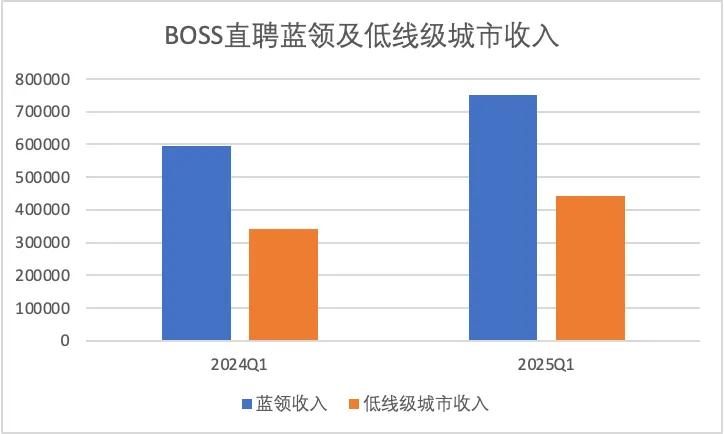 近年來,隨着覆蓋用户數量的提升,BOSS直聘也成為了招聘藍領企業的選項之一。2025年第一季度,BOSS直聘曾經披露過一個數據:來自藍領的收入同比上漲25%,帶動大盤上漲。