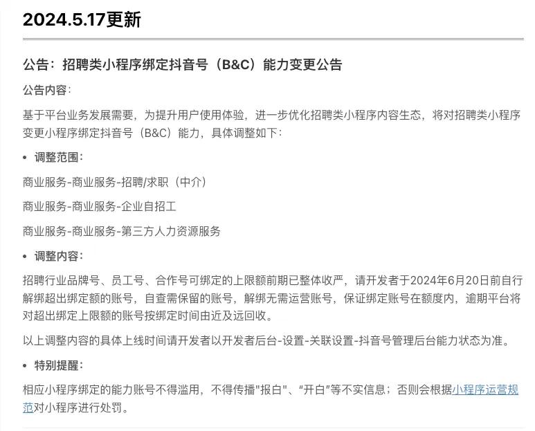 在推動涉招聘業務時,不難發現大型平台往往選擇代理的方式——用小程序承接服務,把崗位審核交給有資質有能力審核的人力資源服務機構,自身不介入崗位來源的篩選。即便這樣,出於安全的考慮,相關平台對這類小程序的發佈資質也卡得很嚴。