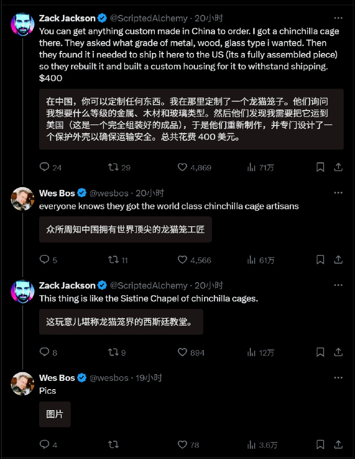 🔻另一個美國人馬上反駁他:“是啊,但他一週只查三次郵件,能拖多久就拖多久才回復你,還會抱怨你的設計圖跟他想要的不完全一樣,最後收你十倍價錢。中國師傅早就做好 20 個寄出來了。你走你的陽關道,別人自有別人的選擇。”