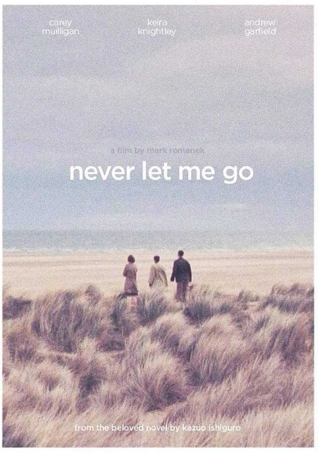 電影《別讓我走》海報,海報中的三位主角為克隆人,故事中,人類會為了給自己提供備用器官而克隆自己。