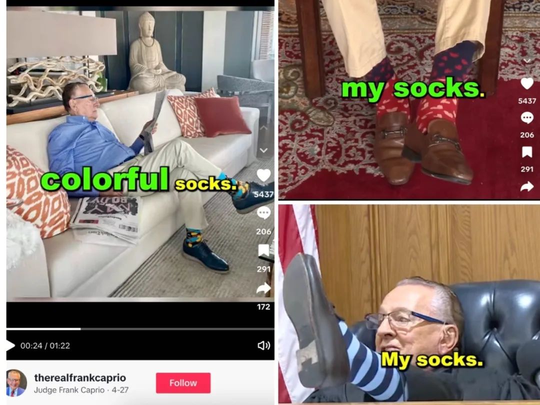 🔺弗蘭克法官在Tiktok上分享自己對彩色襪子的熱愛