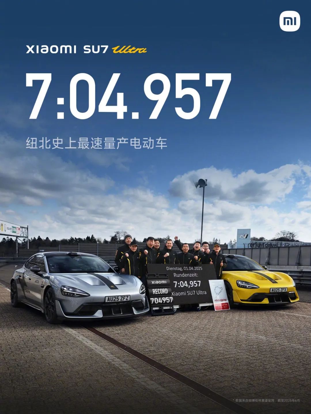 在汽車領域,本季度小米SU7 Ultra原型車再次征戰紐北,以6分22秒091的成績刷新小米此前創造的全球最快四門車圈速紀錄,成功進入紐北圈速總榜全球第三。此前,小米SU7 Ultra量產車也在紐北刷圈,以7分04秒957的成績成為紐北史上最速量產電動車。