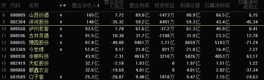 據東方財富網白酒概念板塊顯示,已發佈2025年中期或一季度業績的企業中,營收超過金沙酒業的就有多達30家,其中貴州茅台上半年營收911億元、洋河股份148億元、口子窖25.3億元。