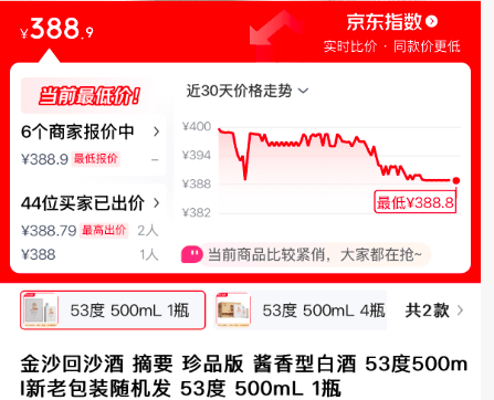 華潤啤酒旗下的“摘要”酒,定位次高端到高端,價格帶原本鎖定在500-600元。但在當前市場環境下,“摘要”酒價格出現明顯下跌,部分終端售價已跌破500元,相比高峯期下跌超百元。8月20日,京東指數顯示,“摘要”53度500ml單瓶價格跌至388.9元,為近30天內最低價。