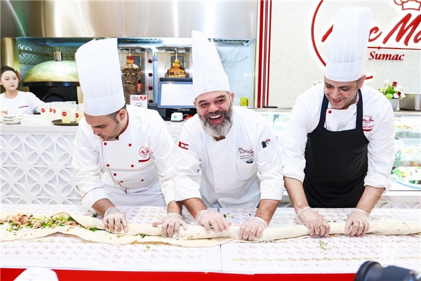 黎巴嫩廚師團隊現場製作一條長達6米的沙威瑪卷