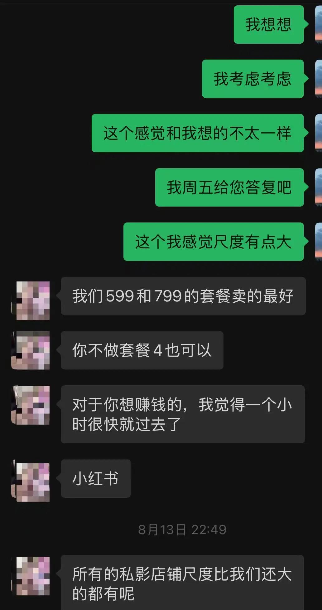 面對“是否尺度過大”的提問,對方輕描淡寫地回應:“小紅書上的私影店,尺度比我們大的都有。”