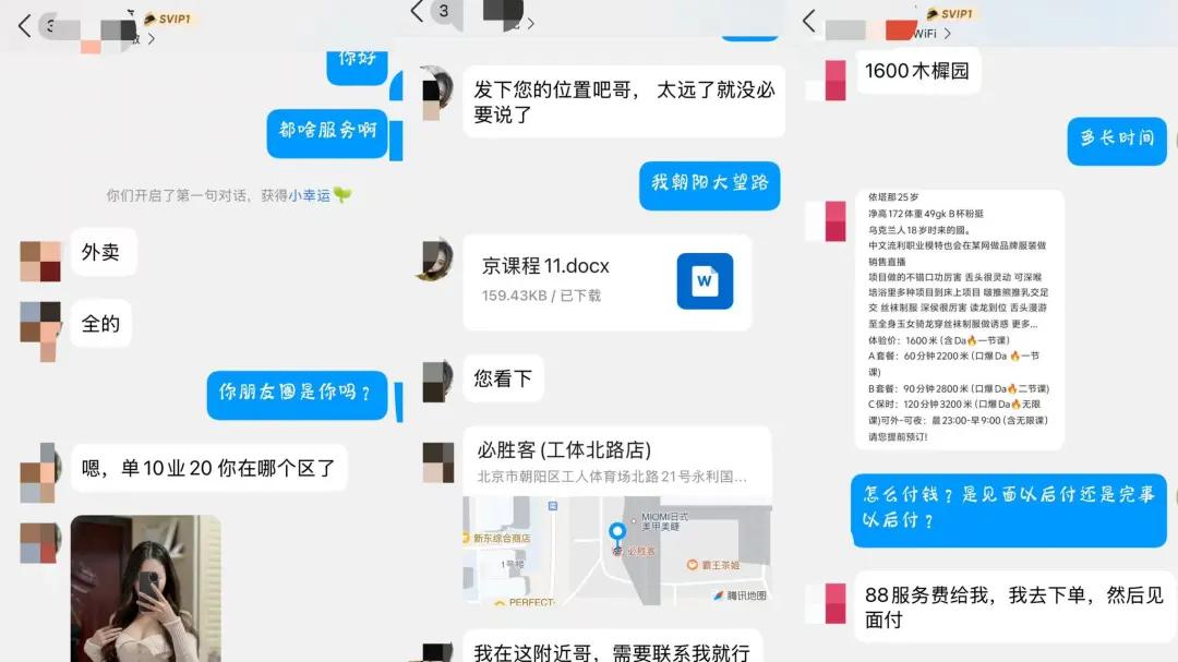 這類賬號不附二維碼,而是引導用户通過評論或私信留言獲取聯繫方式。一旦建立聯繫,對方便會迅速轉移至QQ或微信等平台,隨即拋出報價表與“服務選項”。服務內容清晰、價格明碼標價,甚至承諾可安排上門。