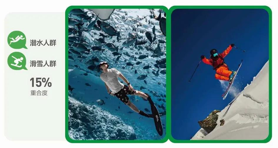 根據《白皮書》,運動户外用户存在身份流動、空間融合、社羣集結等新趨勢,運動户外不再侷限在野外也能搬進城市、室內,不再專注於某一項運動而是多重身份切換、全時段運動。比如“藍白雙修”(同時擁有夏天潛水/衝浪、冬天滑雪兩大愛好)是典型的小紅書户外場景標籤,過去一年相關筆記內容曝光量高達2500萬。