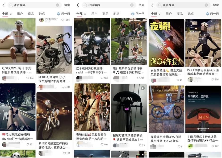 在小紅書上搜索“夜騎神器”能得到豐富推薦 圖源:小紅書