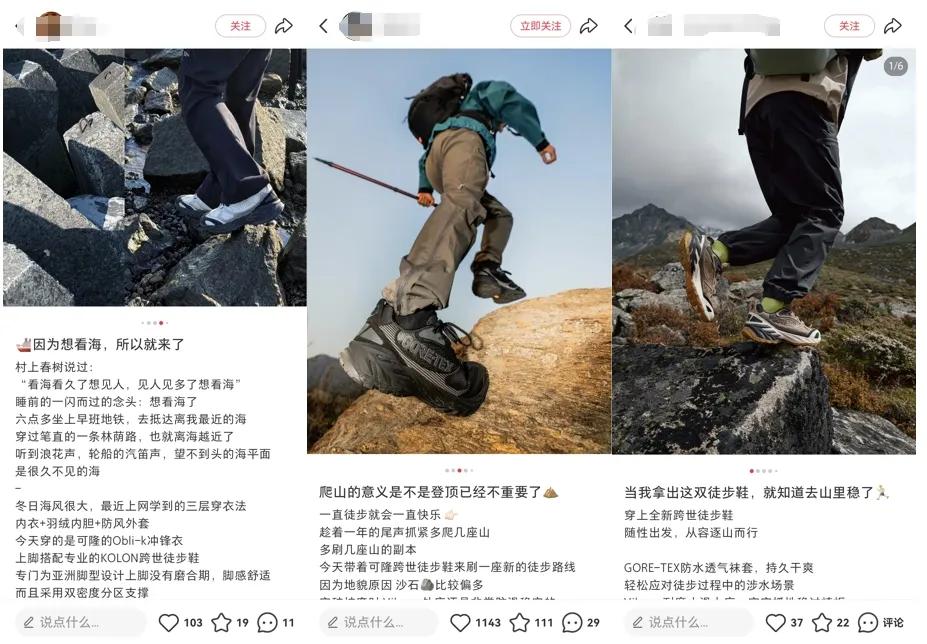 可隆大單品跨世徒步鞋打透用户心智 圖源:小紅書