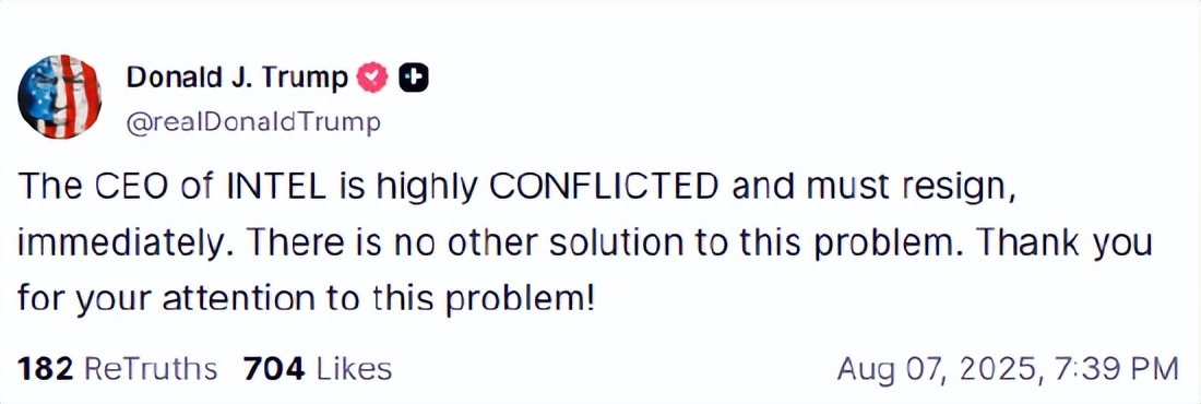 劇本的開場,是一句充滿火藥味的總統指令,特朗普一如既往地以看似充滿隨機性的方式,在社交媒體上對英特爾發難。