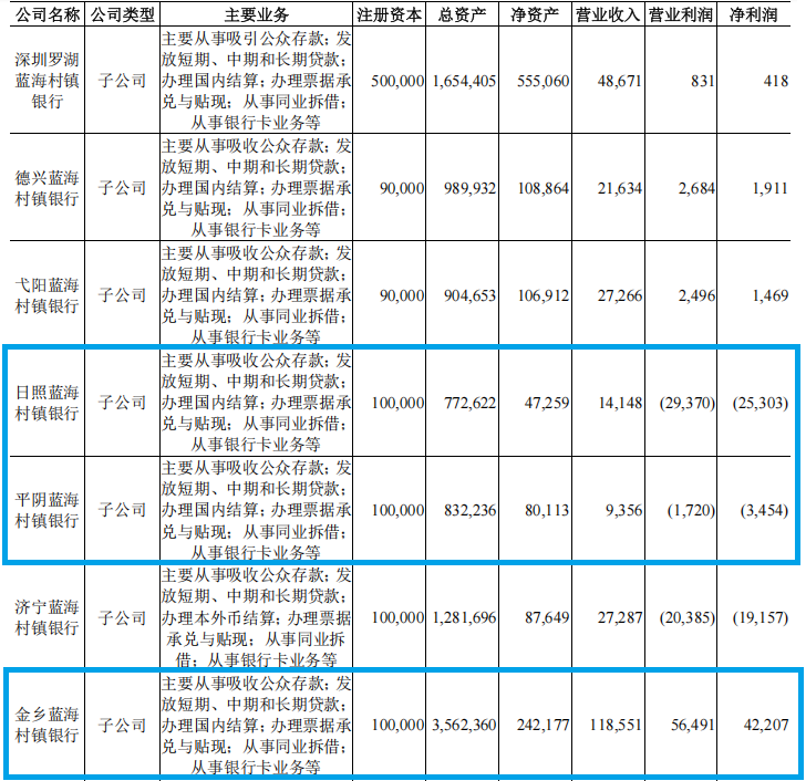 截至目前,青農商行旗下控股參股的村鎮銀行有9家,其中持有日照藍海村鎮銀行15%股權(表決權比例為60%)、金鄉藍海村鎮銀行31%股權(表決權比例為61%)、平陰藍海村鎮銀行52%股權(表決權比例為62%)。