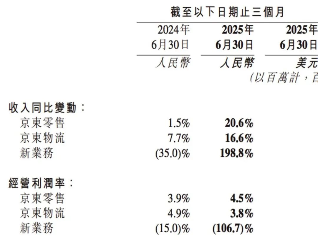 根據京東2025年二季報,京東實現營收3567億元人民幣,同比增長22.4%。其中,京東零售貢獻了3101億元營收,同比增長20.6%,環比增長17.53%。