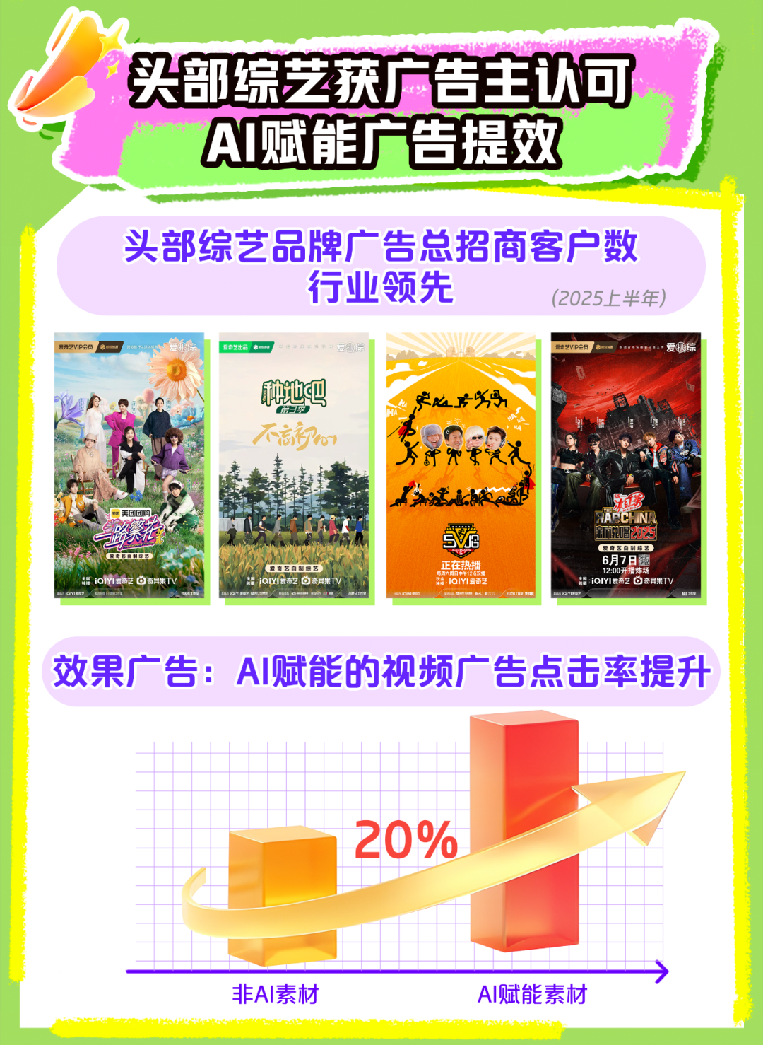 而在商業化後端,通過利用AI優化廣告素材和投放策略,本季度愛奇藝AI賦能的視頻廣告點擊率,比非AI素材提升了20%,這意味着廣告主的錢花得更有效率,平台的廣告庫存價值也得到了提升。