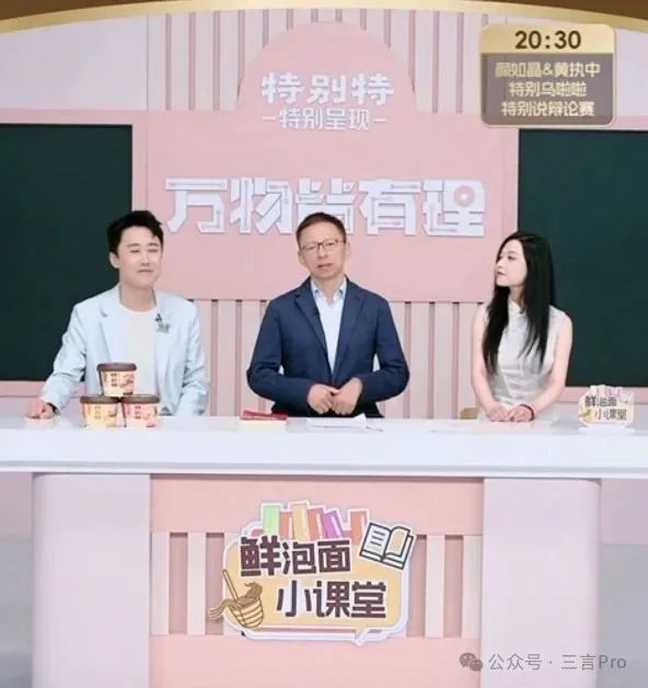 康師傅除了請羅永浩宣傳外,還特地邀請搜狐張朝陽在直播間上了一堂“特別版物理課”,借一些“特別特”泡麪的特色講解知識。