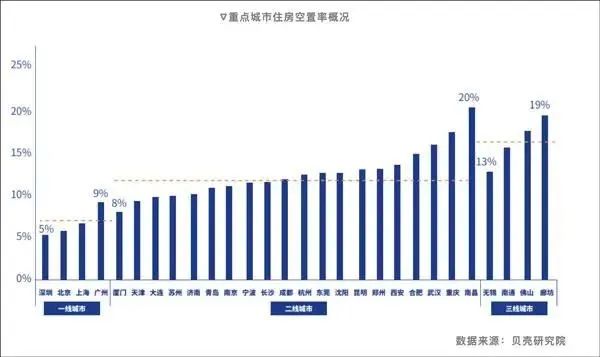 2022年前後,貝殼研究院曾經做過一項調研,發現我國28個大中城市平均住房空置率達到12%。