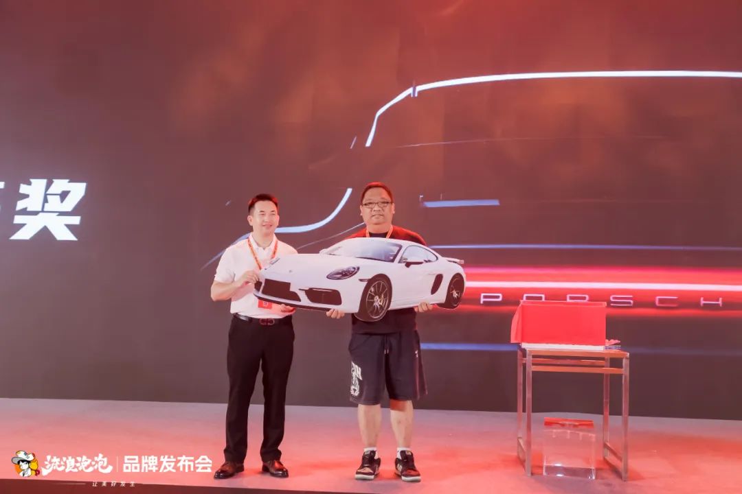 為了表彰優秀加盟商,致敬全國加盟標杆,發佈會特別設置了加盟商頒獎禮環節,並送出諸多福利,包括手機、現金以及跑車等等。來自臨沂的加盟商幸運地獲得了品牌方送出的百萬豪禮,現場喜提保時捷!