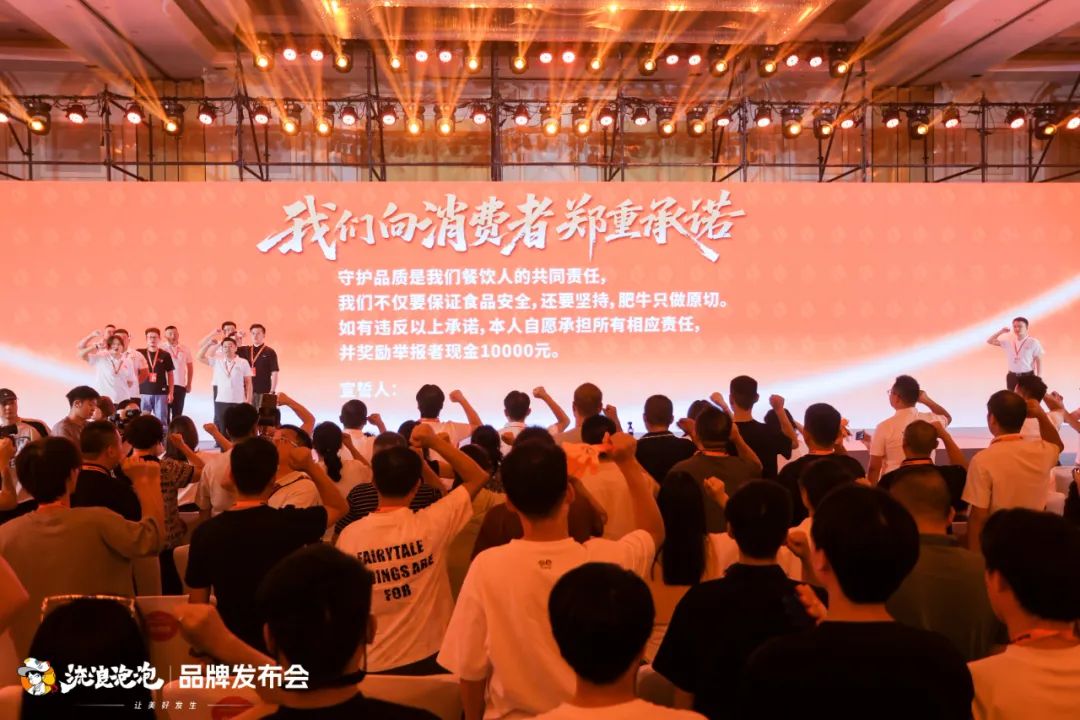 在產品品質方面,流浪泡泡有一條鐵律——“肥牛隻做原切”。這句話出現在它的近400家門店裏,出現在各種宣傳物料中,出現在了這次發佈會上,並且以一種令人意想不到的方式被着重強調——