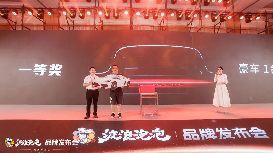 今天(8月21日)下午,武漢漢口喜來登大酒店,全國烤肉賽道新晉頂流“流浪泡泡烤肉店”(簡稱“流浪泡泡”)舉行了一場盛大的發佈會。發佈會高潮迭起,其中最令現場和直播間沸騰的是壓軸環節,流浪泡泡送出了百萬豪禮——來自山東臨沂的加盟商,喜提一輛保時捷!
