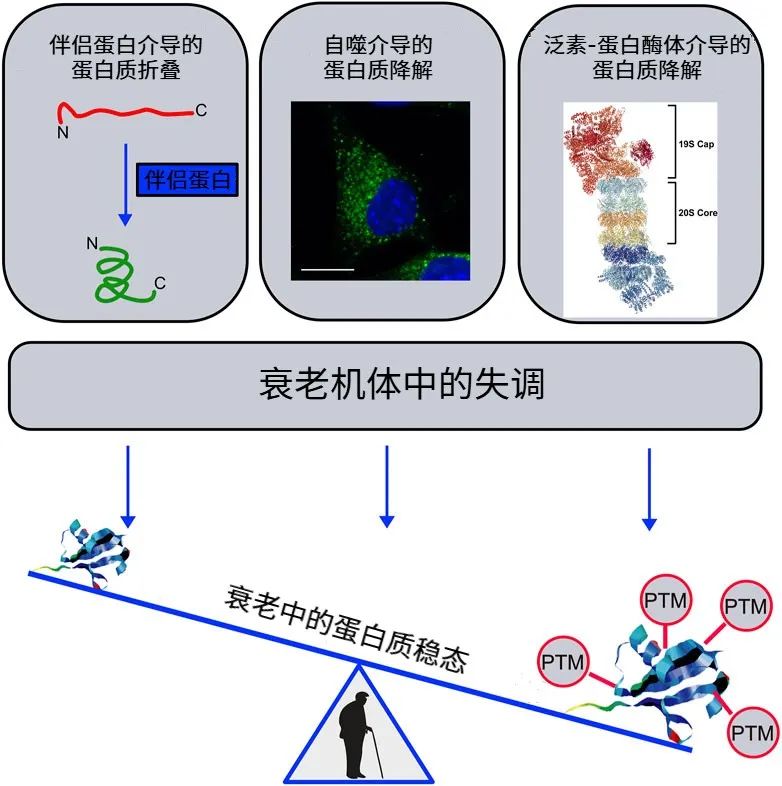 以往,談起蛋白質穩態失調,我們總會將其與衰老的關係定位於隨年齡增長出現的蛋白質合成變差(翻譯得太多、太少或錯了,如錯誤摺疊、聚集)、降解效率下降(垃圾蛋白清理不及時)等方面,如老年痴呆中β-澱粉樣蛋白和tau蛋白的異常聚集。