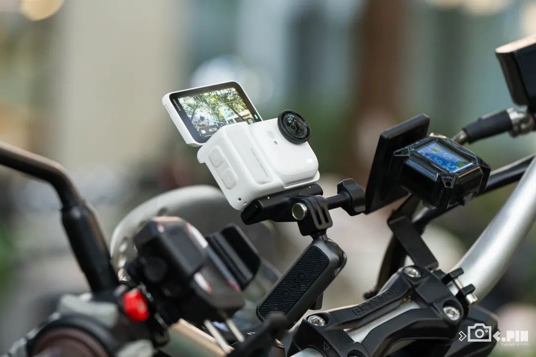 這是因為 GO Ultra 本身就支持超強防抖,機身還內置了降噪麥克風和多場景音頻優化算法,自帶的 4 種音頻模式對普通人來説完全夠用,就算把它綁在摩托或滑板上,拍的視頻照樣穩得一批。