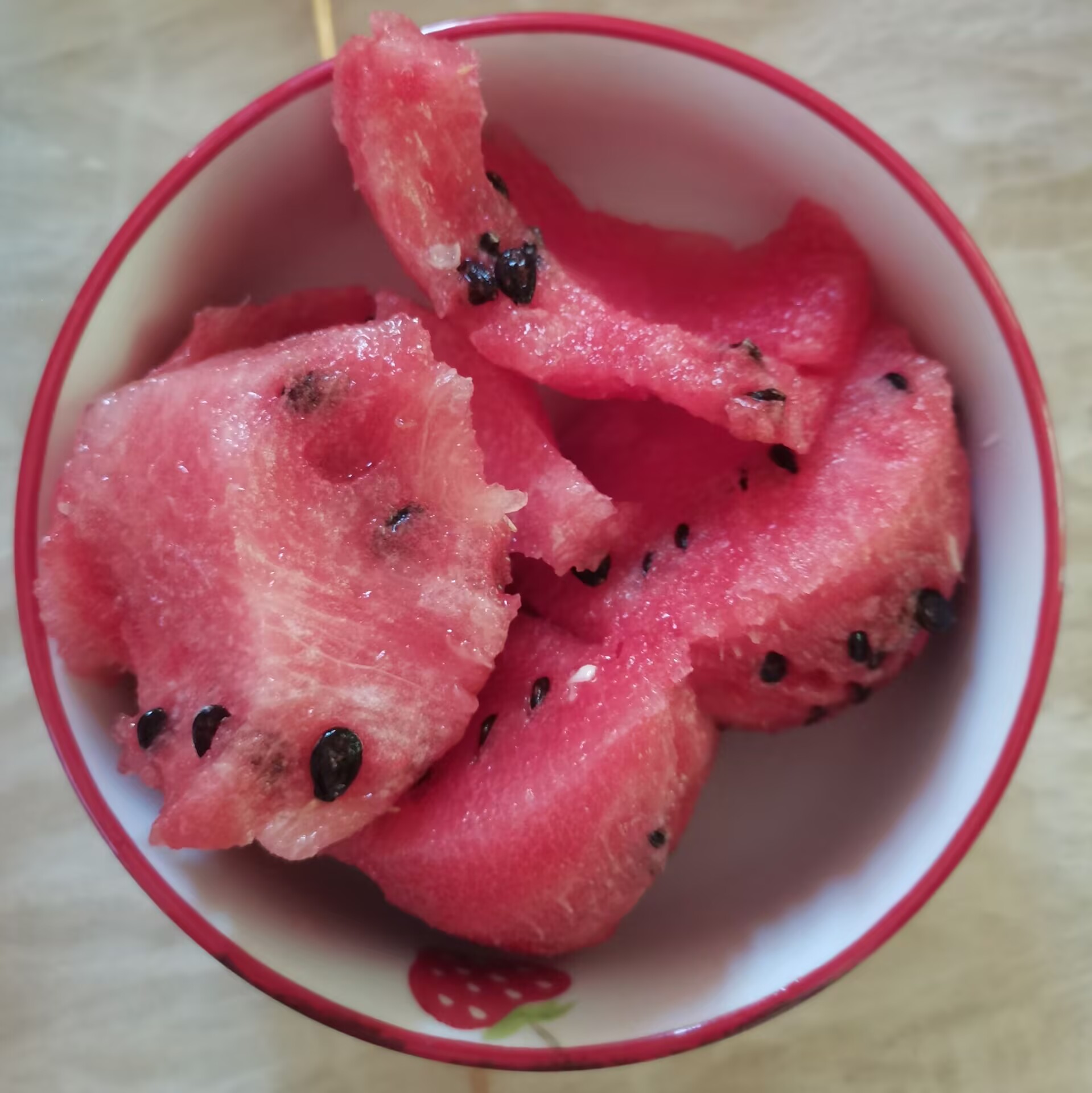 我這樣的分配方案,醜醜毫無異議。在醜醜端着兩碗西瓜瓤上樓之前,我悄悄叮囑她道:“這碗稍微多一點的,給媽媽。你人小,就稍微少一點的那碗。”我這樣的差別安排,醜醜也樂於接受。