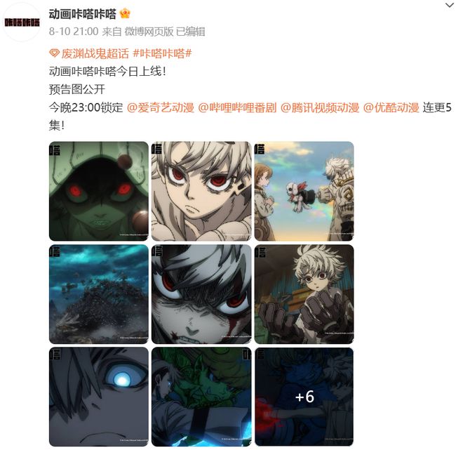 引進國內平台播出的七月新番《咔嗒咔嗒(廢淵戰鬼)》,8月9日在微博宣佈引進,次日便直接定檔上線。青山剛昌《劍勇傳説》的重製動畫《真武士傳YAIBA》,由路畫影視負責版權引進與代理,官方賬號也一直在積極發佈物料。還有《光死去的夏天》,其製作委員會成員CyberAgent曾就內容推廣直接與微博達成合作。