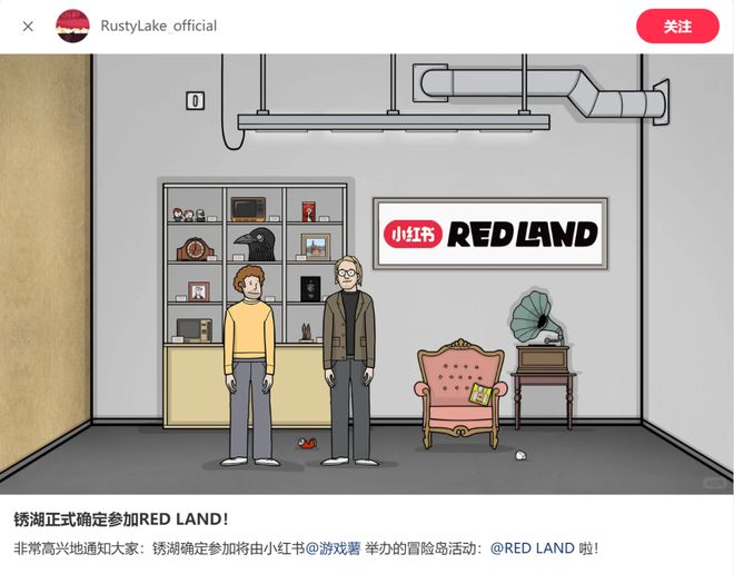 獨立遊戲開發商鏽湖工作室,也在多平台開設賬號,今年則首次授權中國線下活動,宣佈參加小紅書首屆漫展,現場搭建的場景供玩家打卡。