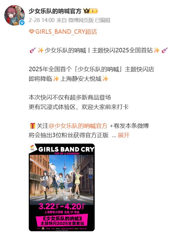 旗下作品眾多,可能也會針對特定作品及其粉絲展開運營,且作品入駐平台逐步增加,諸如東映的《航海王》於去年正式入駐微博,又於今年7月在抖音、快手、B站開設官方賬號。就算季番已經完結,但IP衍生商品、線上線下活動的宣傳仍然要依靠官方賬號,《少女樂隊的吶喊》自今年2月宣佈入駐微博當天,就開始推廣即將到來的大悦城的主題快閃以及B站線上演出的相關信息。