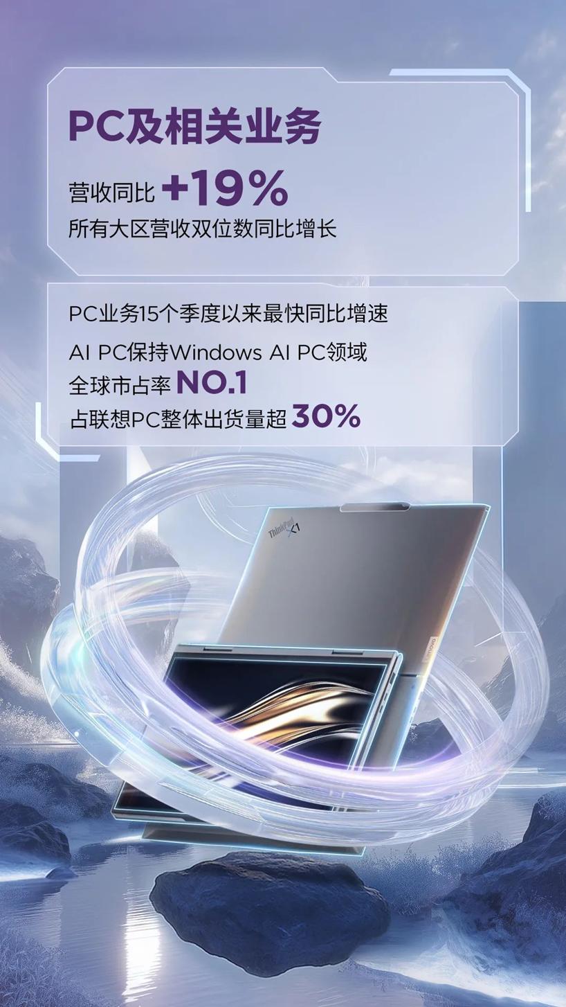 結合財報來看,聯想的AI PC確實成功打開了市場。2025/26財年Q1財報顯示,聯想AI PC出貨量佔全球PC出貨量超30%,中國市場具備五大特徵的AI PC出貨量佔比筆記本總出貨量27%,“天禧”個人超級智能體的WAU平均值達40%。