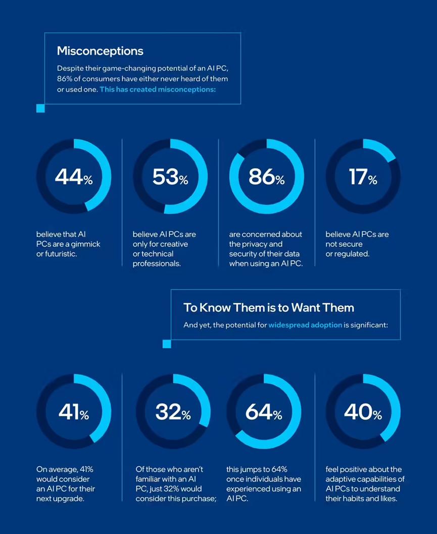 2024年11月,英特爾發佈調研報告指出,高達86%的受訪者從未聽説或使用過AI PC。更令人感到意外的是,已擁有AI PC的用户中,78%的人認為AI PC的使用效率低於傳統PC。