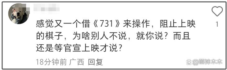 當然,更奇葩的則是有網友認為這是一個新的狙擊《731》上映的操作,不然為啥早不説晚不説,偏偏要趕在官宣上映前説。對此,只能説,大夥兒腦洞開太大,王尊曬出的所有劇組照片都出自《731》,電影不能上映浪費的也是他的心血,而發文曝光也是維護自己的權益。