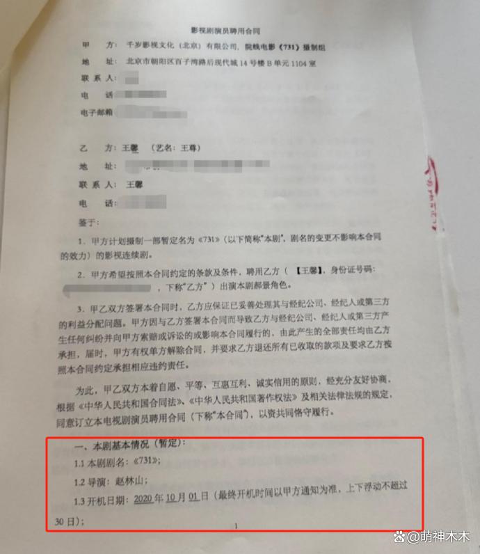 王尊透露自己在電影裏演繹“郝景”一角,在2020年5月與《731》劇組簽訂了演員聘用合同,裏面明確標明瞭勞務和結款時間,但劇組及導演未按約定支付,所以他曝光了合同、通告單等當作佐證。然而,上訴宣判他勝訴後,導演及劇組仍舊胡攪蠻纏,拒絕履行合約和判決。