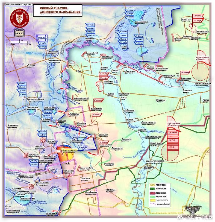 老軍官凱魯林更新了頓巴斯南部的情況,他蘇式作圖對局勢演繹的很清楚