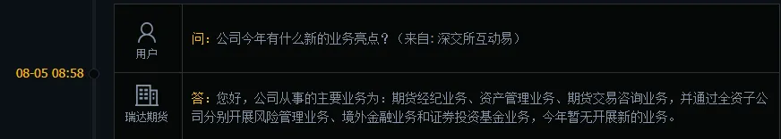 瑞達期貨二季度末存貨規模較上年末激增209.32%,源於子公司瑞達新控備貨增加,庫存積壓風險需要警惕。同時,如何在追求業績發展中兼顧合規更是其必須解決的問題。在近期的投資者互動中,瑞達期貨明確表示,“年內無新業務佈局”。