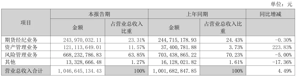 8月20日,A股期貨“F4”之一瑞達期貨(002961.SZ)發佈2025年半年報。報告顯示,公司上半年實現營業收入10.47億元,同比增長4.49%;實現歸母淨利潤2.28億元,同比增長66.49%。