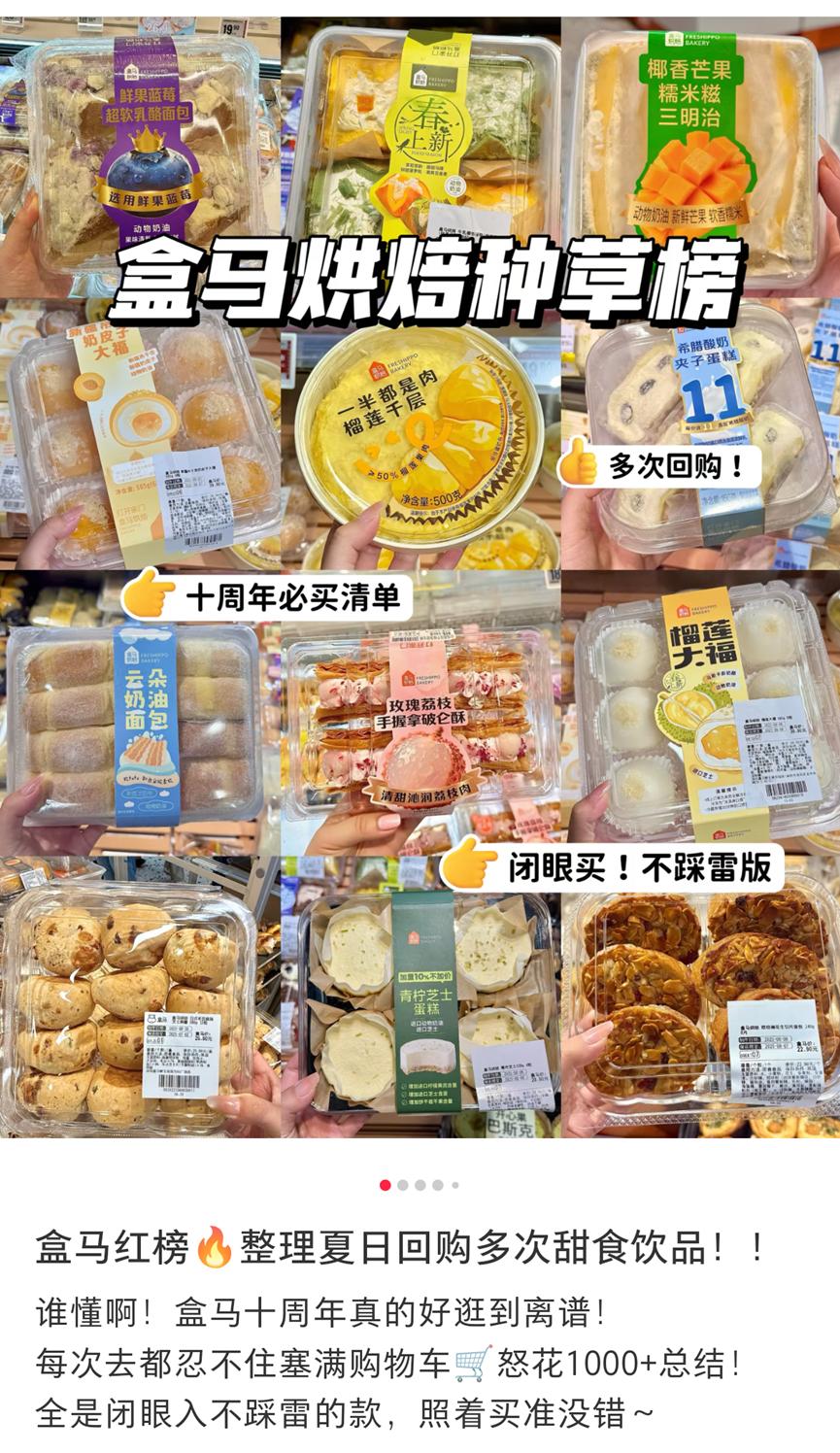 當前,盒馬已經形成了自己的驅動系統,在各個垂直領域樹立起了自己的地位。比方説在烘焙領域,盒馬烘焙已然成為可以媲美獨立烘焙品牌的業務線,不僅保持了基本銷量的穩定增長,而且基本上每個季度都能出網紅爆品。在小紅書、微博等社交媒體翻翻,能看到不少對盒馬甜品的測評和種草,像前段時間爆火的一半都是肉榴蓮千層,現在依舊熱度驚人。