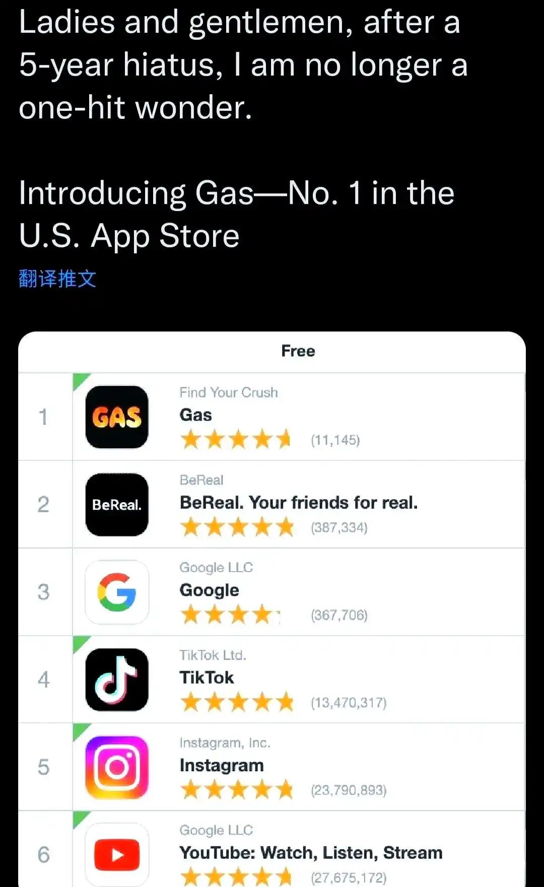 2022年,瞄準高中生、主打“匿名誇誇”的Gas迅速走紅,半個月內下載量就達到了50萬次。2023年初,Gas被《2023全球獨角獸榜》排名第23位的Discord收購,看似前景大好,可距收購不到9個月,Discord就決定關閉Gas,原因是用户流失過快。
