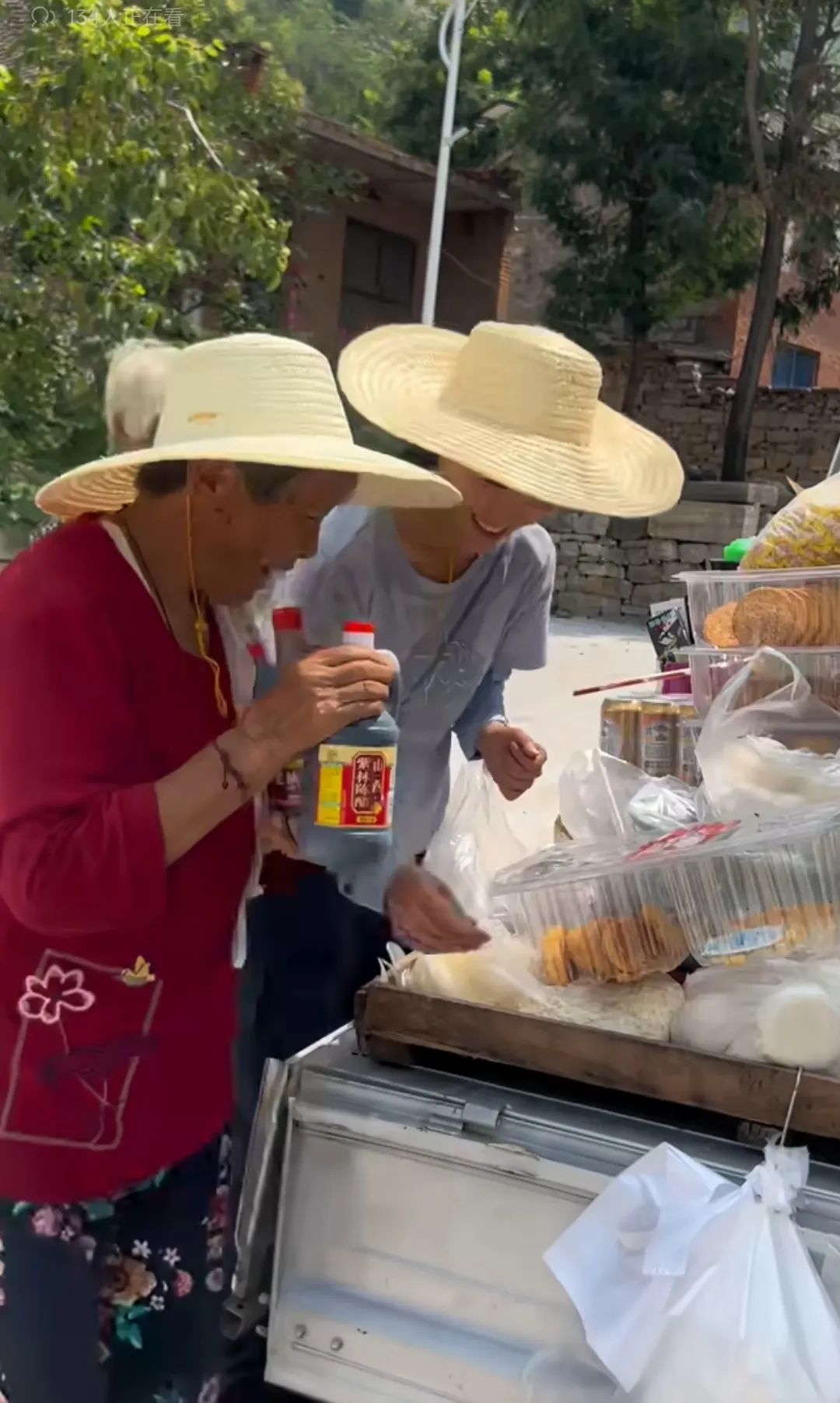 李福貴的帶貨視頻、日常生活視頻能火,離不開這些山裏的鄉親。她的帶貨不是“三二一,上鍊接”,是真開着小貨車,在太行山裏跑村賣貨。車上的豆腐、點心、小百貨,大多賣給了這些一輩子沒離開過鄉間的老人。