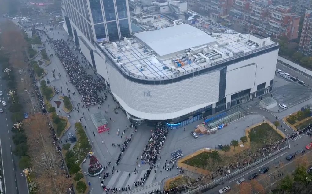 胖東來天使城店的航拍圖,顧客正在廣場上排隊等待進入超市(圖源:新華社)
