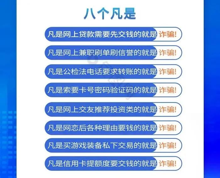 最後,我們一同複習一下國家反詐部門總結的口訣,