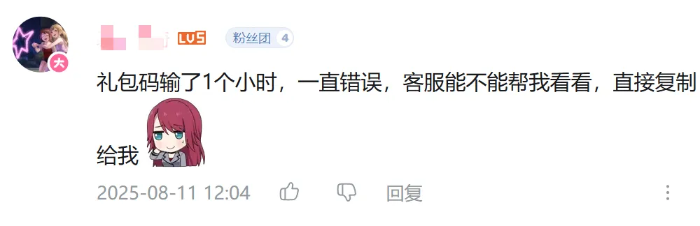 搶到禮包的玩家興奮地拿出兑換卡即刻打開遊戲進行兑換,但他們發現一件事,這個兑換卡的兑換碼,似乎並不是那麼好輸入。