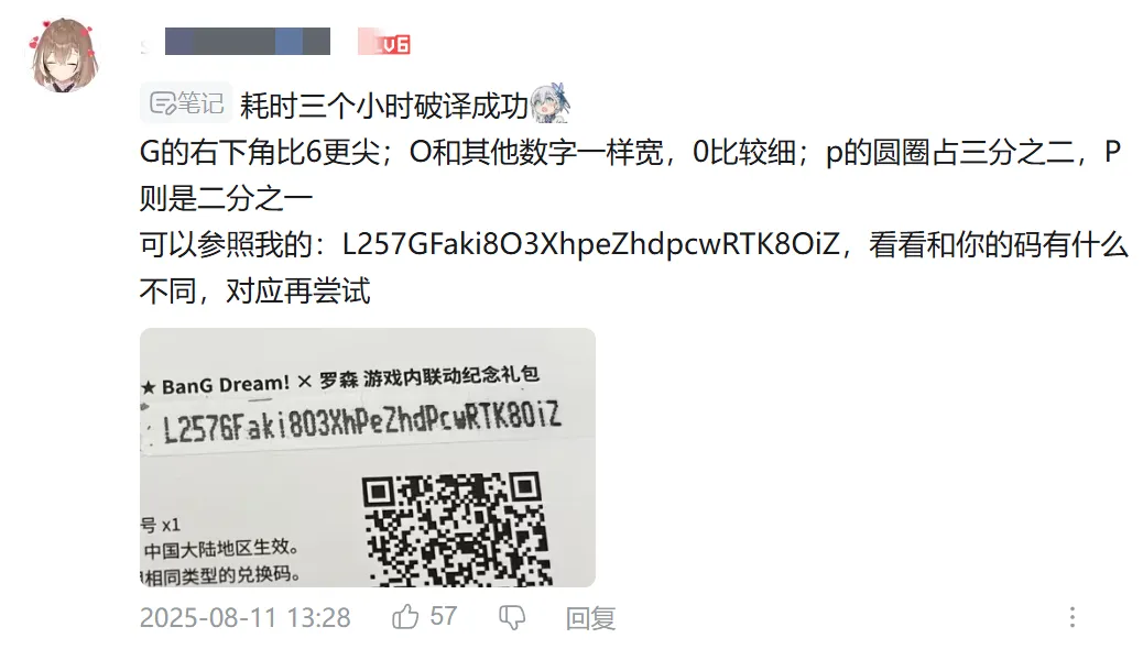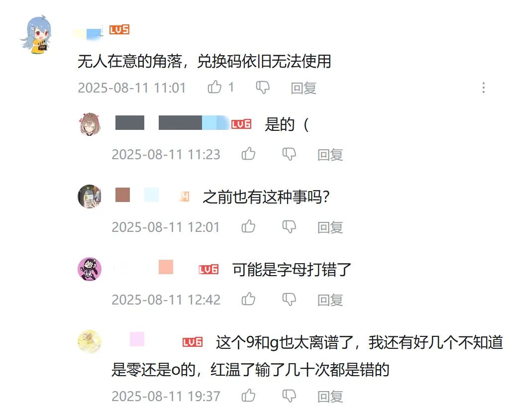 這次的兑換碼中不但沒有迴避像0和O這種非常容易混淆的字母和數字,還區分了字母的大小寫,最關鍵的是印出來的還並不清楚,就連6和G,1和Ij都長得特別像。