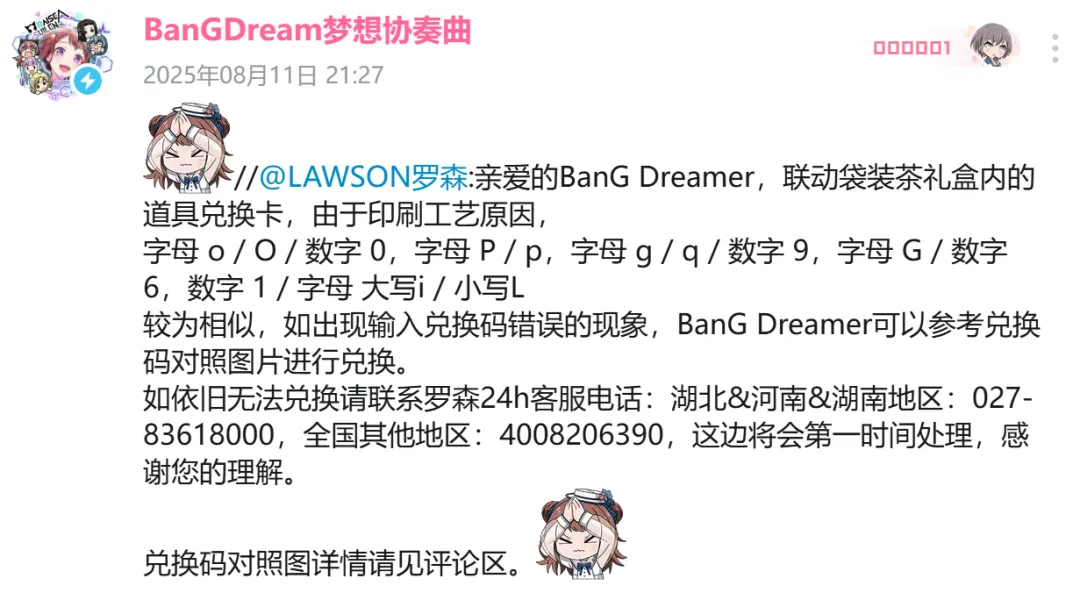 官方也很快注意到了這一點,羅森方面緊急發了聲明,表示這次的問題是由於印刷工藝,邦邦遊戲官方緊接着轉發了,而且兩方均使用了遊戲中Poppin’Party成員户山香澄的抱歉表情包。