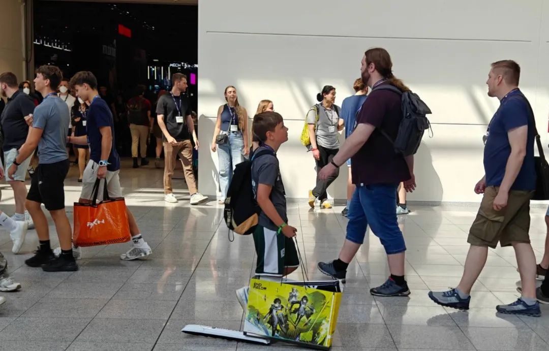 在現場,中國遊戲的存在感更是強烈到讓人無法忽視——基本每個館都會有國產遊戲的展位,不少還排着長隊;在場館內外隨意放眼望去,也一定能見到有觀眾提着印有國產遊戲logo的大袋子,實際上當我提着這類袋子的時候,還碰上過幾次其他觀眾問我哪裏領、需要做些什麼。
