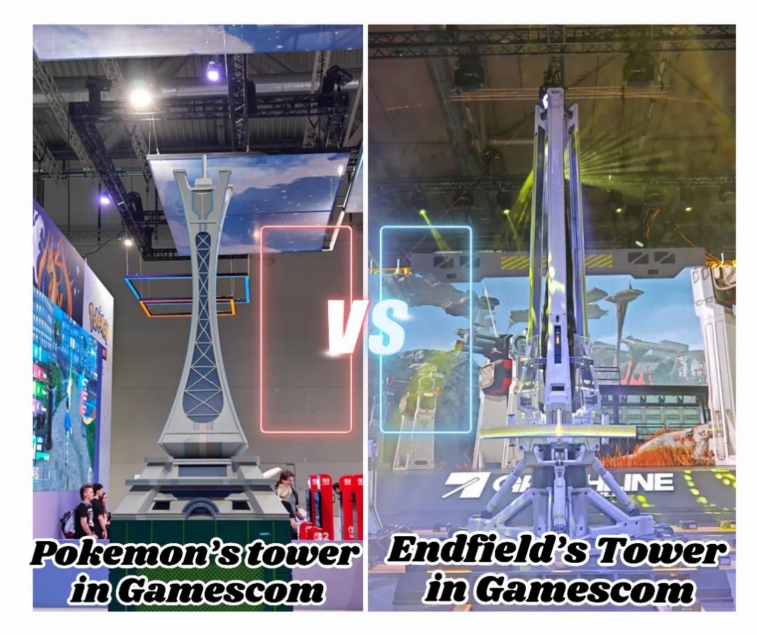 剛好寶可夢展台也有個形狀類似的塔,不免被觀眾們拿來作對比