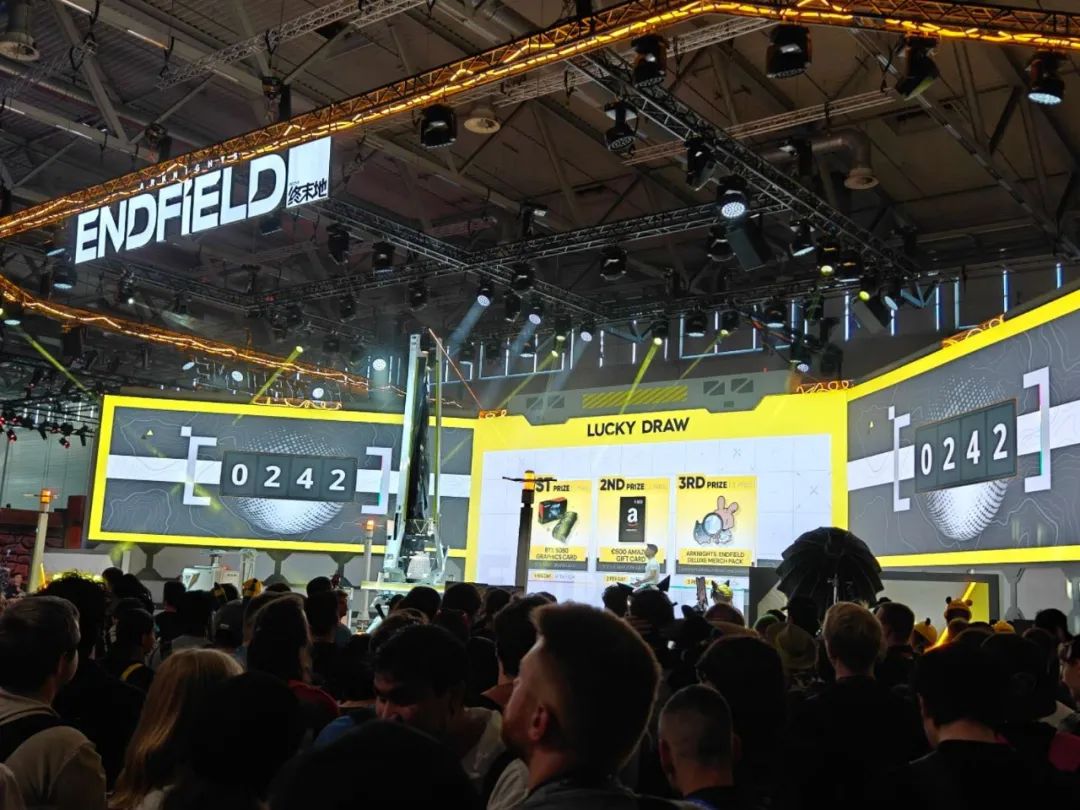 從這一點來説,就像前面提到的,鷹角今年用《明日方舟》的“線下沉浸展”,迭代了原本行業內常見的“粉絲嘉年華”,《明日方舟:終末地》這次的展台也不止是跳出了自身的二遊框架,放眼整個Gamescom來説,像這樣做工精細的“動態奇觀”,也肯定算得上頂尖佈景。不出風頭都難。